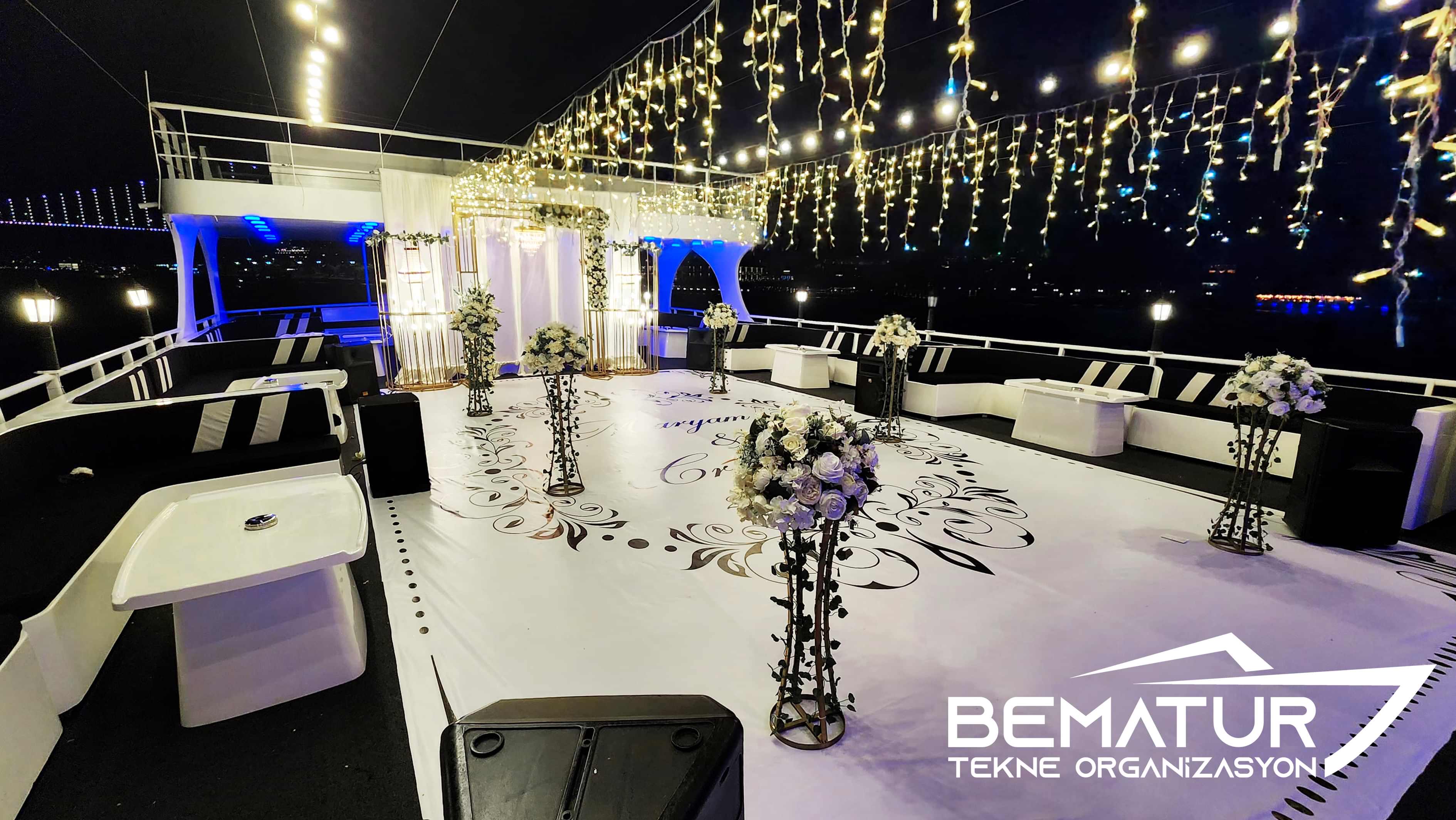 Bematur Tekne Organizasyon olarak İstanbul Boğazı’nda gerçekleştirdiğimiz teknede düğün organizasyonlarında her detayı titizlikle planlıyor, çiftlerimize sadece anın tadını çıkarmak kalacak bir deneyim sunuyoruz. Çünkü teknede düğün, doğru planlandığında hayat boyu unutulmayacak bir hatıraya dönüşür.